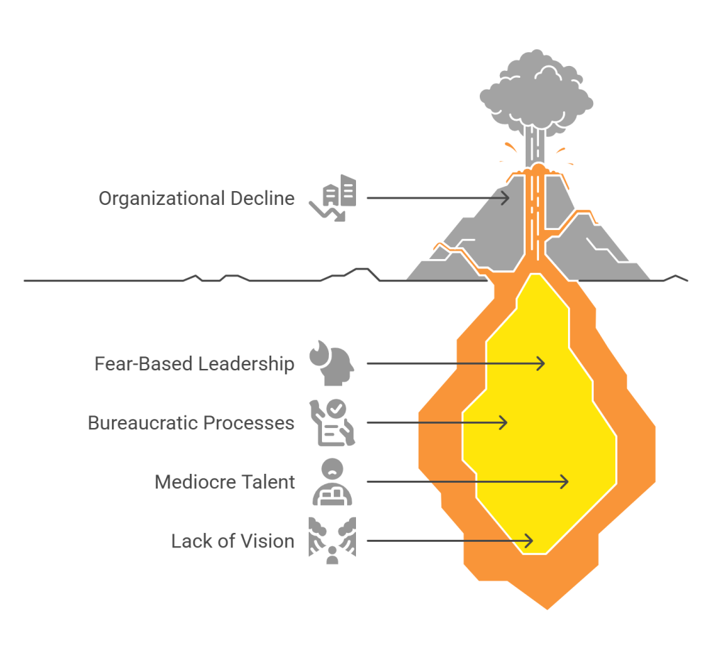 • Slow Decision-Making – Fear-based leadership leads to excessive bureaucracy and inaction.