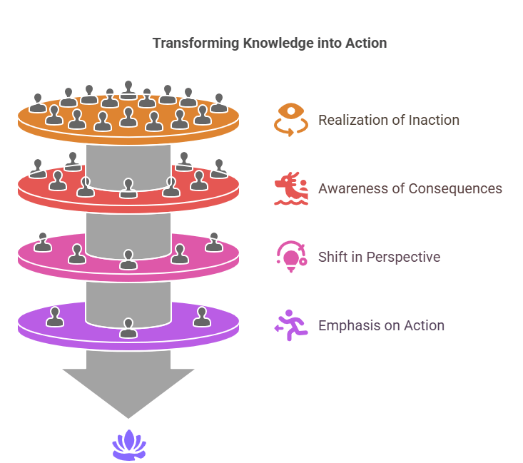 We sit in the comfort of knowledge consumption, unaware that the heat of inaction is gradually numbing our ability to make decisions, take risks, and lead. The more we consume without applying, the heavier the burden of information becomes—until we’re paralyzed by it.