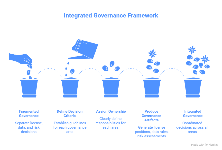 | One integrated decision | License governance (cost & value) | Data governance (what flows) | Risk governance (what we accept) |