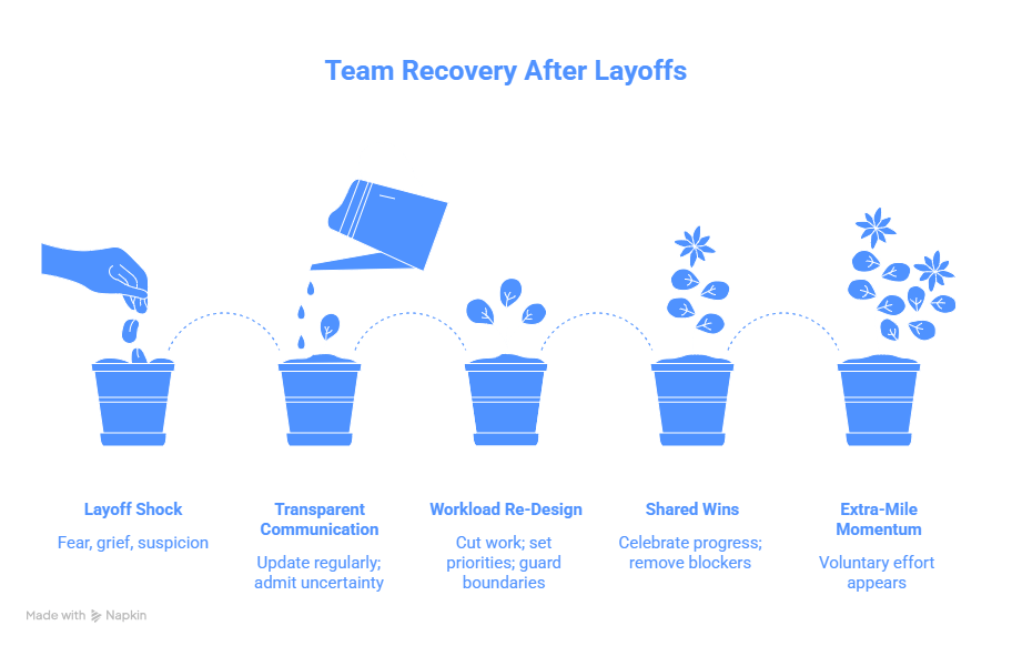 Aim to update people regularly—even when the update is “no change.” Reliability builds trust faster than perfect messaging. - 2) Re-architect workload, don’t just redistribute it